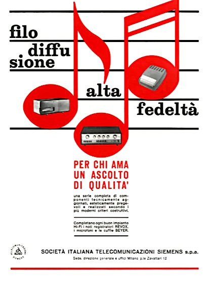 En esta ocasión queremos destacar un diseño interesante por su belleza y elegancia, es el Siemens ELA DC 43 16 Diffy un aparato que nos permite explicar el auge de una forma de difusión de radio en muchos países europeos y en este caso en Italia: el "hilo musical"