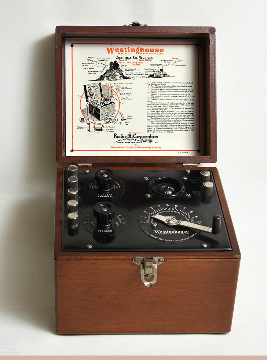 Este receptor de una válvula (tipo WD-11) con circuito regenerativo es elegante, portátil y vendido completamente montado. Con un pecio de 65 dólares, se convirtió en una puerta de entrada para miles de hogares. Fue uno de los primeros modelos domésticos fabricado por Westinghouse y distribuido por Radio Corporation of America (RCA). y supone el acceso generalizado a la radiodifusión en el hogar.