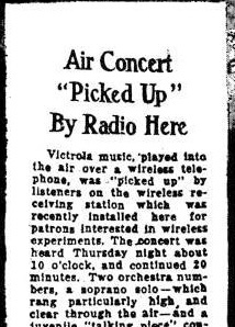 Podemos ver el anuncio que publicaron en el *Pittsburgh Sun*: “Concierto por el aire recogido por una radio aquí … La música procede del Victrola en casa de Frank Conrad…”