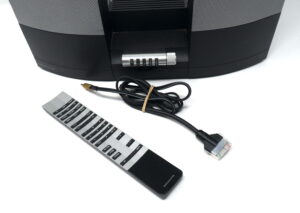 Por este motivo ofrecemos una solución. Se trata de habilitarlo como altavoz auxiliar. ¿Cómo? Con un cable que hemos construido que se coneccta al conector masterlink y que en el otro extremo tiene un Jack 2,5 mm, por lo que puedes conectarlo a un ipod, o, como hemos hecho nosotros a un dispositivo Amazon input (o Flex).De esta forma se convierte en un altavoz inteligente autónomo. Y se podrá utilizar la rueda de volumen y el botón de apagado y encendido.
