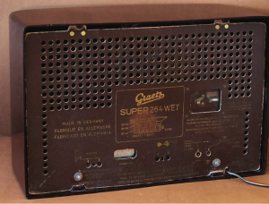 Radio Graetz de los años 50, donde podemos encontrar evoluciones de las radios de válvulas. Son radios que ofrecen mayor o menor tamaño, potencia, pero siempre bajo una estética parecida y reconocible.