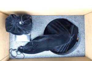 Mostramos en las fotos el cuidado de sus creadores que no sólo se aprecia en el aparato sino en el propio embalaje, con el altavoz y la base guardados en elegantes bolsas de terciopelo.