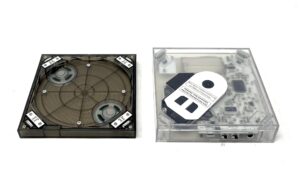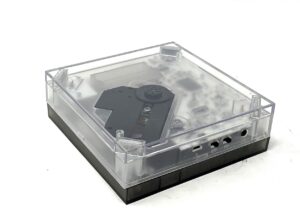Desde hace unos años se han puesto de moda los diseños de aparatos vintage transparentes o traslúcidos. Así podemos encontrar radios de bolsillo, reproductores de cassette walkman y, como este caso, un reproductor de CD.