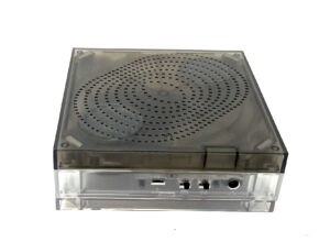 Aparato de diseño excepcional. Además del diseño transparente, es muy versátil (portátil, ubicación horizontal y vertical…) y la calidad de sonido es de alta calidad cuando se conecta con un dispositivo externo