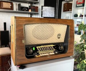La radio, además vistosa por su tamaño, era de las mejores de la época, y las familias con más poder adquisitivo la situaba en un lugar de relevancia del salón. El precio en Alemania era de 369 marcos alemanes, lo que a día de hoy serían miles de euros. Estamos por tanto ante un lujo de los años 50.