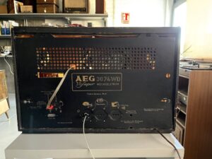 Esta radio AEG 3D-Super 3074 WD es un modelo de alta gama de los años 50. Una radio de gran tamaño, con sus 3 altavoces (uno de graves y dos agudos) y todas las funcionalidades avanzadas de la época.