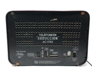 Radio Telefunken Seduccion AC1753. Construida en España por Telefunken Radiotécnica Ibérica, ubicado en Getafe, debido a las restricciones de la época, que requería que se fabricasen en nuestro país.