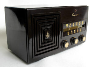 Esta radio de válvulas EMERSON 641 se fabricó en el año 1950-1951. Técnicamente es un superheterodino de 7 válvulas.