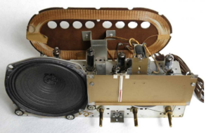 Recibe en Onda Media, tiene un altavoz magnetodinámico de 15 cm. de diámetro y la caja es de baquelita. en su interior alberga iuna antena de cuadro, por lo que no es necesario una antena eterna.