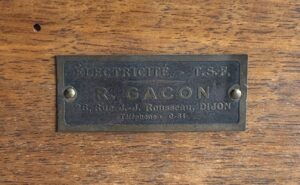 Este aparato es una pieza de colección de los primeros días de la radiodifusión, fabricado por R. Gacon de Francia. En una época en la que los receptores de radio no se fabricaban en masa, sino bajo pedido, este modelo refleja el espíritu pionero de la tecnología de la época. La radio está marcada con el nombre ELECTRICITE R. GACON, 8, Rue Rousseau, Dijon, lo que la vincula directamente con su lugar de origen.