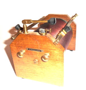Preciosa radio de Galena que estimamos se fabricó en los años 20 en España. Desconocemos la marca, y pensamos que se trata de una radio de kit de gran calidad.
