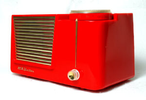 RCA 6-X-8 B de 1955, llamada «The Wilshire». Una radio americana de diseño realmente llamativo.