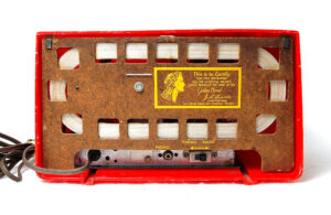 - Su color rojo y su diseño es realmente llamativo, con una gran rueda superior para la sintonizacikón de emisoras.