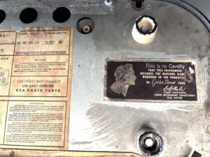Puede verse en la última fotografía la certificación ubicada en la parte inferior del aparato: Las radios «Golden Throat» fueron certificadas por el ingeniero jefe de RCA.