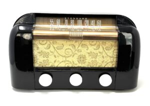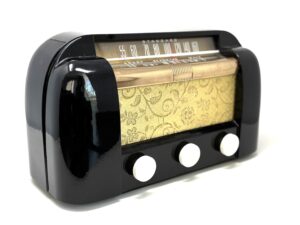 Esta radio RCA 66X2 incluye el famoso «Golden Throat». Se refiere a un tono de audio específico y una respuesta de frecuencia característica de las radios RCA antiguas, particularmente las de la década de 1940. Era una tecnología patentada desarrollada por el ingeniero jefe de RCA, cuyo objetivo era equilibrar los altos y bajos del espectro de audio.