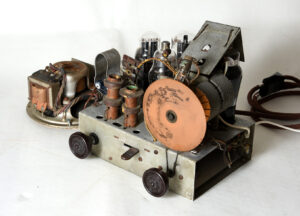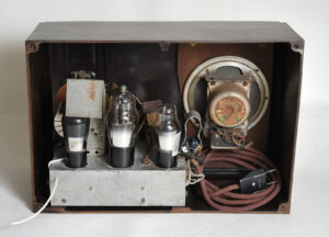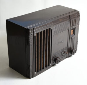Obviamente el primer comentario es sobre su edad, una radio de unos 90 años, y funcionando perfectamente.  Adicionalmente, destaca el uso del plástico / baquelita en la caja, porque lo habitual era una caja de madera en aquella época.