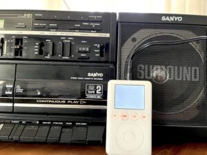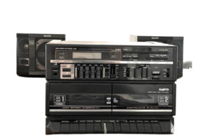 Radiocassette Sanyo M8004SR de los años 80. Para nostálgicos pero también para quien quiere un radiocassette de calidad, en perfecto estado de funcionamiento. Tiene radio digital, dos pletinas y hemos añadido el cable para conectarlo a un iPod, o a un receptor bluetooth que también se incluye. Así se puede escuchar con calidad la música que tenemos en nuestro teléfono inteligente.
