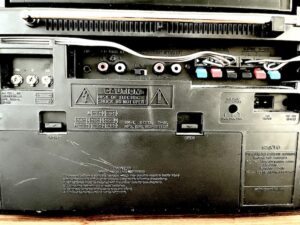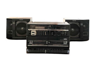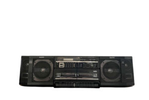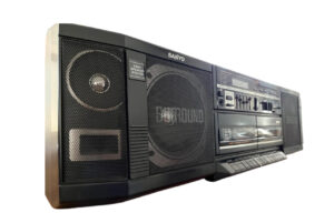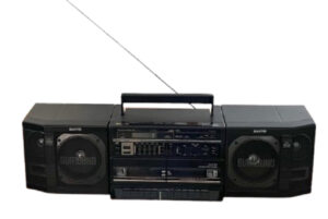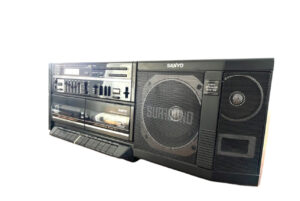 El equipo es grande, imponente para los radiocassettes de la época. Es la versión que Sanyo hizo de los BoomBox americanos.