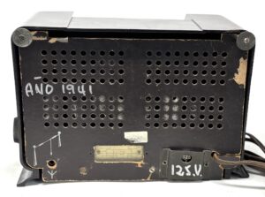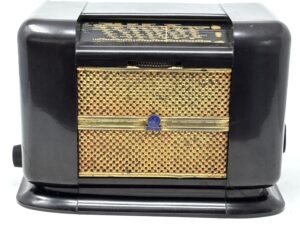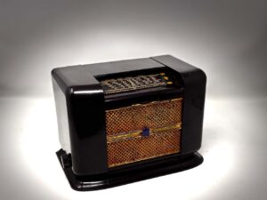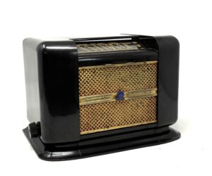 Es una radio de gama media de la época, de 5 válvulas, típica de los años 40 fabricada en baquelita, en lugar de las habituales de madera.