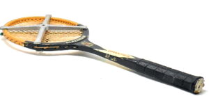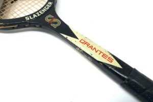Se trata de una raqueta de madera de los años 80. Este modelo lleva el nombre y la firma del mítico Manolo Orantes que jugó con la marca Slazenger toda su carrera profesional.