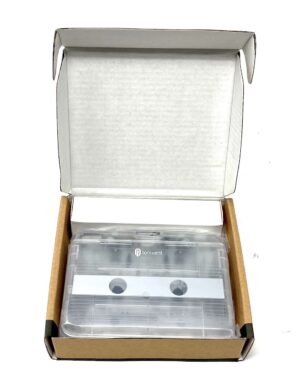 Reproductor de Cassette transparente de diseño, en la línea que se ha puesto de moda, que combina estética y aparatos antiguos con el diseño transparente que permite ver los componentes del interior de los aparatos.