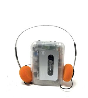 Es un aparato que «revive» la nostalgia de los aparatos antiguos, en este caso de los walkman, incorporando incluso el «mítico» auricular de diadema (en este caso de la marca de calidad Koss!). Pero «reinventa» el Walkman al fabricarlo en plástico transparente de forma que podemos ver su interior, los chips, y las correas en funcionamiento.