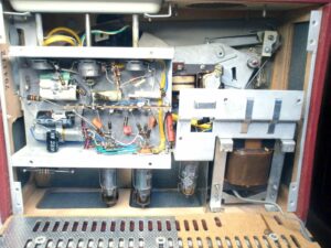 ¿Qué es OTL – Output transformerless? En los años 50, Philips diseñó un circuito amplificador con dos válvulas de potencia en serie, que tiene una impedancia de salida relativamente baja (500-1000 ohms). Fabricó, asimismo, altavoces de 600 y 800 ohms que se acoplan directamente a este amplificador, sin transformador. Como resultado, se logra una calidad de sonido excepcional en bajas frecuencias. Por este motivo, para muchos coleccionistas y aficionados a los aparatos vintage, este tocadiscos Philips NG2484 tiene el valor estético y pero también técnico.