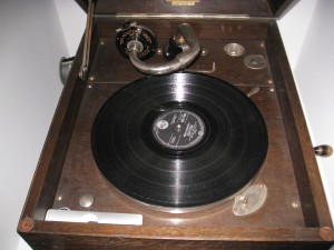 Tras la invención del fonógrafo por Edison, se produjeron diferentes evoluciones sobre el mismo. El gramófono fue el resultado de un intento de rebajar los costes de producción, al utilizar los "discos de Pizarra o piedra" que estaban hechos de un material plástico muy económico. Eso si, los gramófonos no permitían grabar como el fonógrafo de Edison, sino únicamente reproducir discos.