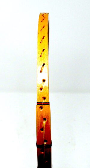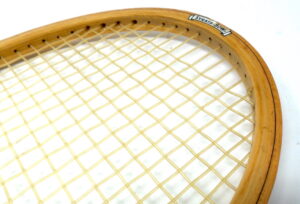 Las raquetas de madera de la época solían curvarse. Hemos incluido una foto en que puede apreciarse el estado de esta raqueta. Tiene una ligera curvatura, apenas apreciable.
