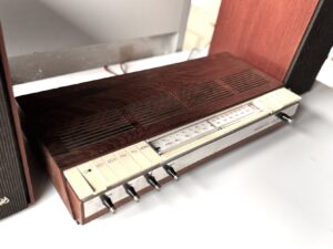 - Finalmente, aunque se podrían añadir reproductores de cinta Reel to Reel de la época (como el Beocord 1000), es cierto que en la actualidad no son tan habituales ni útiles como el tocadiscos. Pero si recomendamos añadir un receptor Bluetooth y conectarlo en la entrada auxiliar. De esta forma podremos escuchar con gran calidad nuestra música favorita (del móvil o plataformas de música).