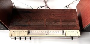Además, su amplificación —considerable para la época— permitía alimentar dos sistemas de altavoces con una potencia sorprendente en un aparato de estas dimensiones, hasta el punto de advertir sobre el uso de altavoces adecuados.