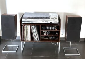 Es un mueble de madera con el ancho para los equipos Beocenter de la marca. Lo hemos probado con equipos como el Beocenter 7000 (y toda su gama) o con el Beocenter 4600, que hemos incluido en las fotografías finales.
